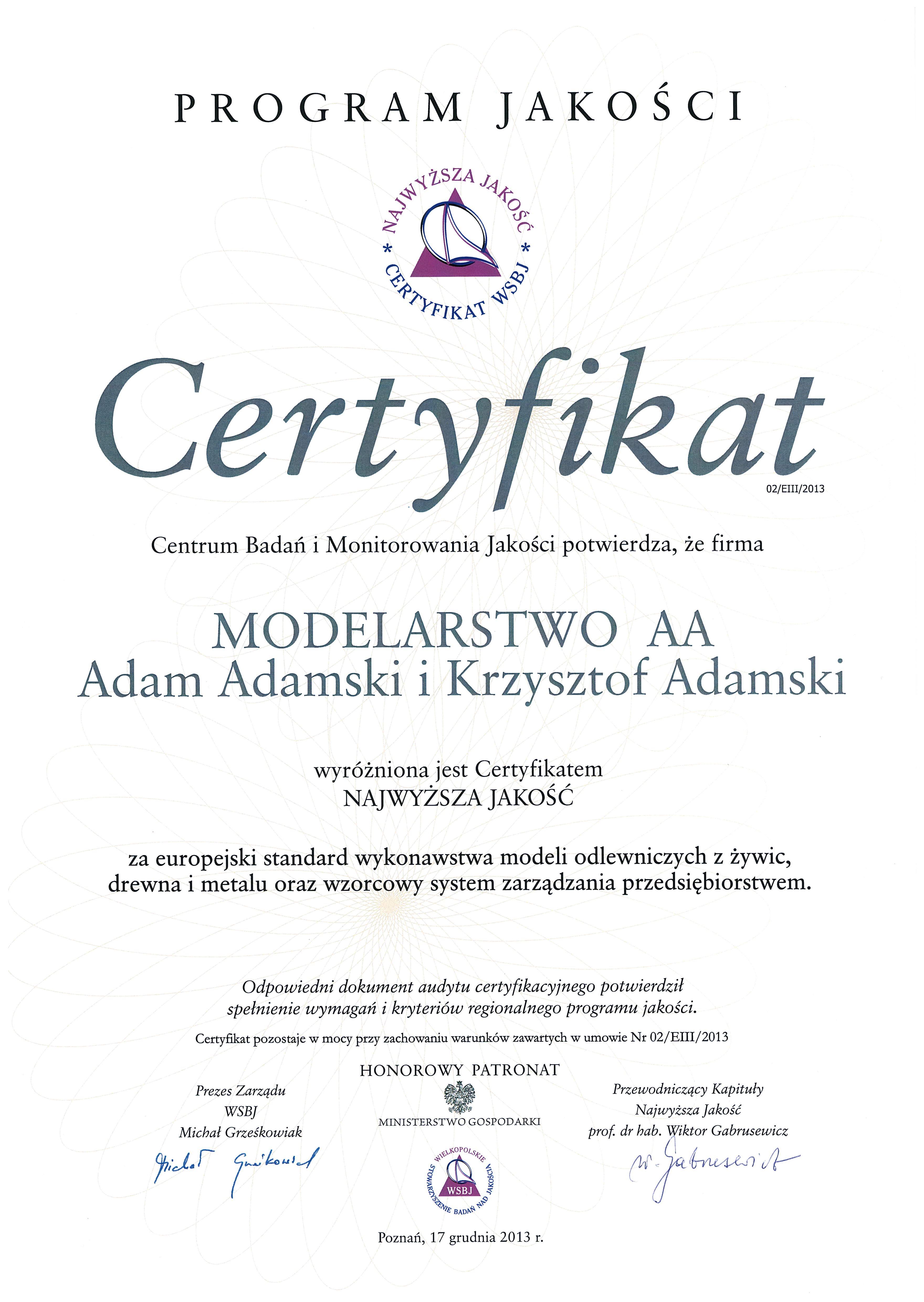 Wykonujemy modele odlewnicze spełniające normy krajowe i unijne. Formy mają niezbędne certyfikaty i atesty. Nieustannie podnosimy nasze kwalifikacje i modernizujemy sprzęt, by dostarczać Państwu produkty najwyższej jakości. Projekty wykonujemy wykorzystując najnowocześniejsze programy komputerowe. Realizujemy zlecenia na nawet najbardziej skomplikowane projekty. Jest to możliwe dzięki bogatemu doświadczeniu naszego zespołu, który przygotowywał już różnego rodzaju formy do wielu branż.